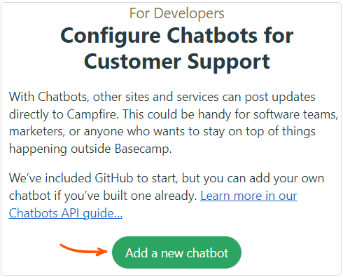 Click the "..." option on the right menu of your Campfire. Click Configure chatbots