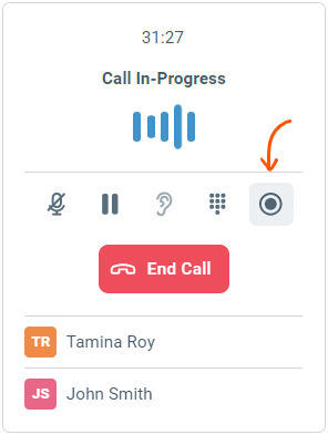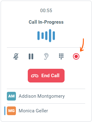 Note that even if call recording is configured to be automatic, a user can stop a recording by clicking the record button during a call.