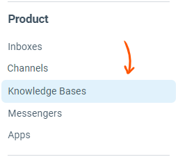 From the sidebar on the left, click on Knowledge Bases option under the Product section: