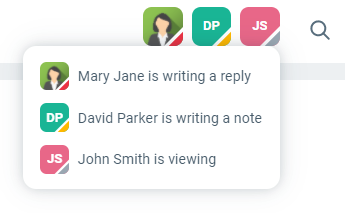 When you are looking at a ticket, an indicator on the right side of the top action bar shows you who else is active on the ticket. When you click on the list of avatars, more detailed information will be shown.