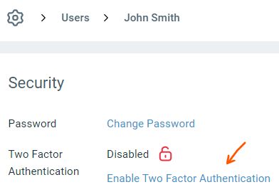 A user can enable two factor authentication from their security settings: